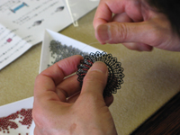 見本と、レシピを確認しながら、ビーズを留めつけていきます